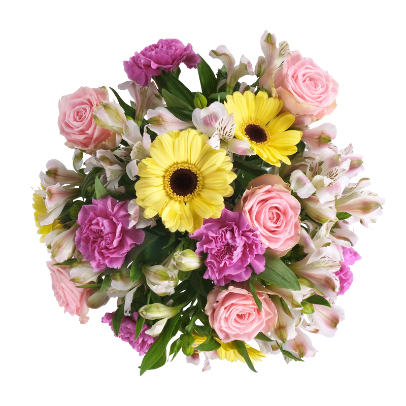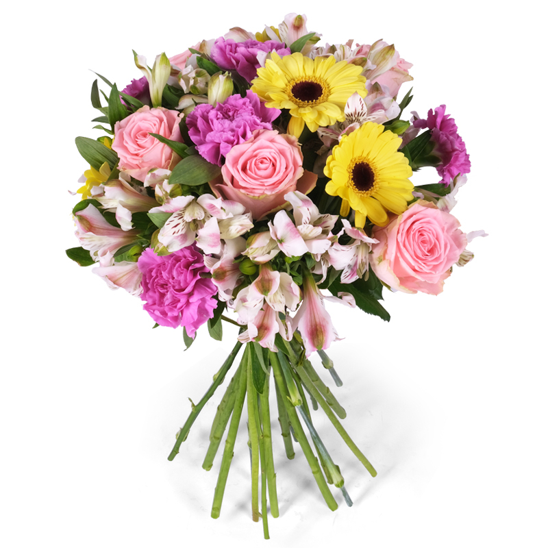 Bukiet mówiący językiem subtelności. Klasyczne róże to od wieków najbardziej cenione kwiaty, promienne gerbery o dużych, wyrazistych główkach dodają odrobiny radości i optymizmu, puszyste goździki wprowadzają do bukietu teksturę, objętość i element przytulności, sprawiając, że całość wydaje się bardziej bogata i wielowymiarowa. Podaruj kwiaty anonimowo lub dodaj bilecik!