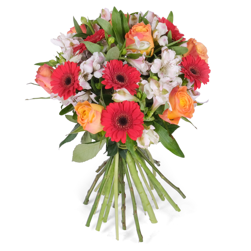 Damska kompozycja dla każdej wyjątkowej kobiety. Róże symbolizują szacunek i podziw, gerbery wyrażają radość i optymizm, alstromerie dodają eleganckich akcentów. Bukiet mówiący więcej niż tysiąc słów, ale jeśli chcesz jakieś słowa dodać – uzupełnij bilecik!