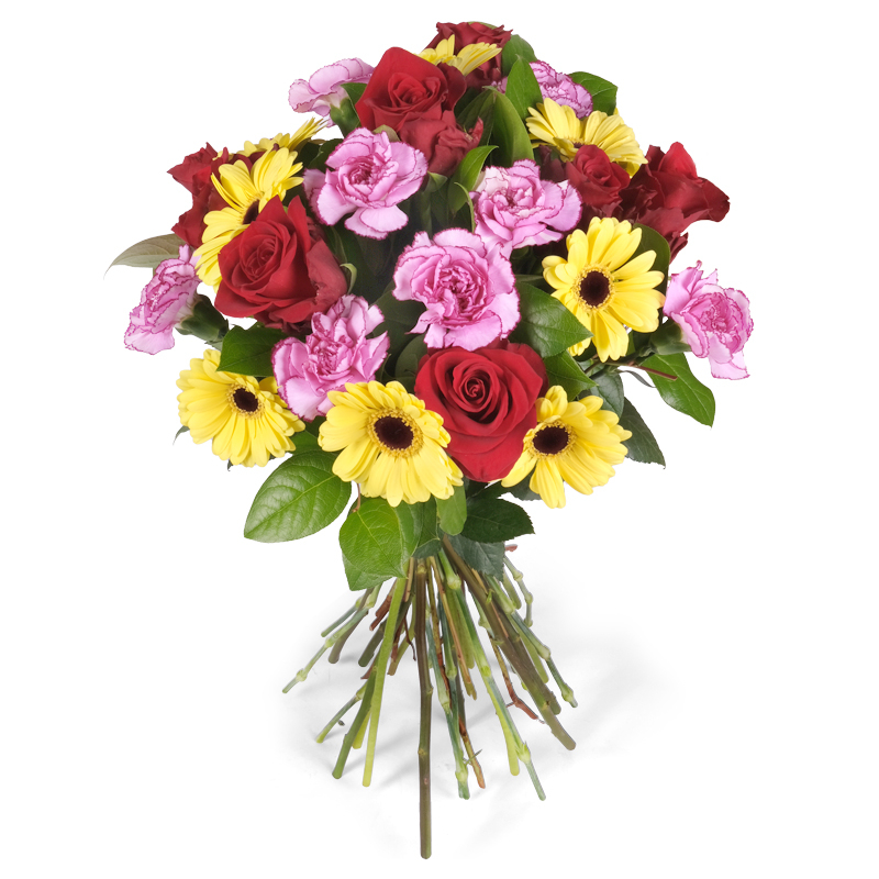 Róże, gerbery i goździki tworzą niezwykle przyjemną dla oka całość. Ten bukiet to połączenie stylu i naturalnego uroku. Sprawdzi się na każdą okazję – od imienin po rocznicę. To kwiaty, które zawsze budzą pozytywne emocje. Z pewnością zauroczą każdego!