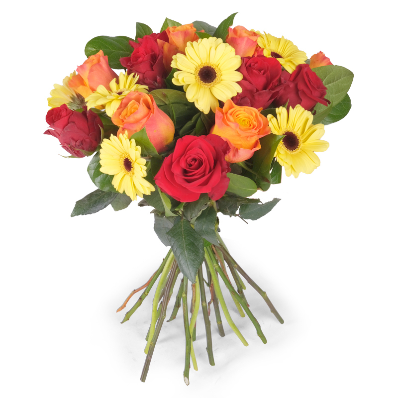 Bukiet, który natychmiast poprawia nastrój. Każdy kwiat został starannie dobrany, by stworzyć harmonijną całość. Róże i gerbery symbolizują radość i szczerość uczuć. To prezent, który nigdy nie zawodzi. Zestaw, który mówi: „ciesz się chwilą”. Dołącz kilka ciepłych słów w liściku lub wyślij kwiaty anonimowo!
